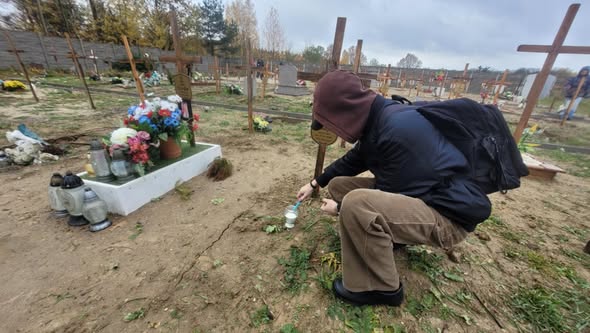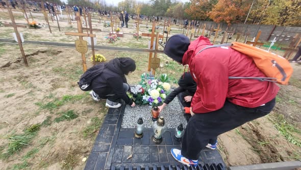uczniowie z klas 3g, 4g i 4s z zaangażowaniem porządkowali groby i palili znicze na cmentarzu dla osób bezdomnych i samotnych, podczas akcji UMŁ "Światełko Pamięci"
