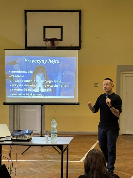 W naszym liceum odbyły się warsztaty z posłem Marcinem Józefaciukiem poświęcone problemowi hejt oraz edukacji obywatelskiej. Uczniowie rozmawiali o konsekwencjach mowy nienawiści, odpowiedzialności oraz o tym, jak reagować na hejt i wspierać innych. Było to wartościowe i inspirujące spotkanie skłaniające do refleksji.
