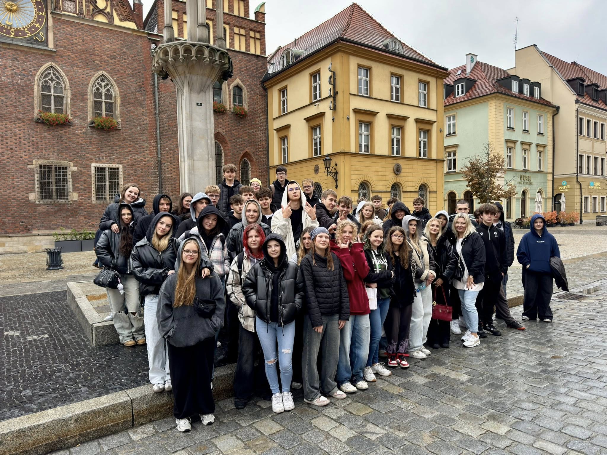 Grupa uczniów na Rynku we Wrocławiu